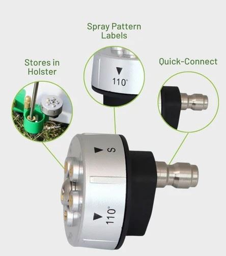 Quickly switch between spray patterns with a multi-nozzle tailored specifically to work with your FlowZone® sprayer! This quick-connect nozzle features an anodized aluminum cover and brass nozzle tips.