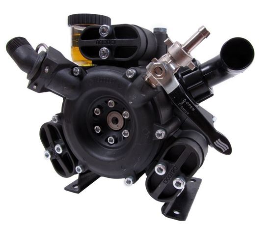 These diaphragm, medium pressure, anodized aluminum pumps achieve up to 14.3 gpm (54.1 lpm) and 580 psi (40 bar). Pressure and output are designed for optimum performance of small to medium-sized sprayers. Pentair Hypro medium pressure diaphragm pumps can be adapted for male 1-3/8" splined shaft, female 1-3/8" splined shaft, 1" solid shaft, or gear reduction drive options.