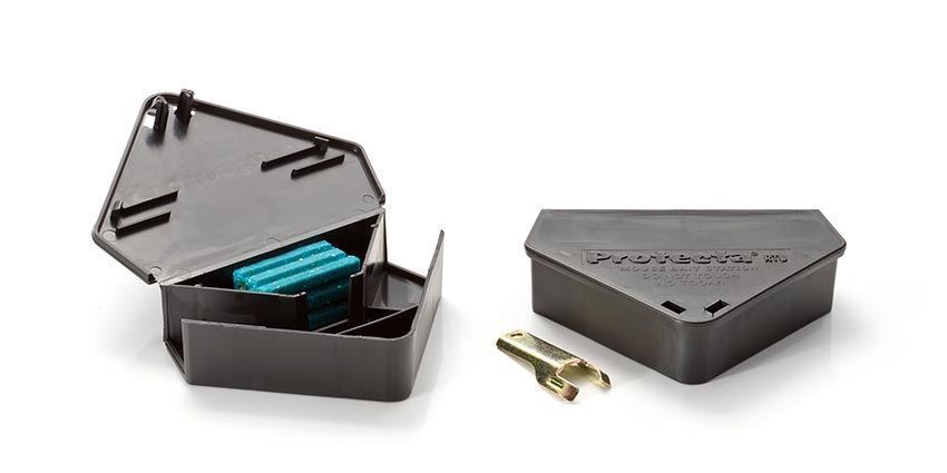 Mouse-size PROTECTA RTU, a staple of the industry since 1991, holds 1 oz., 28g, 20g and 15g BLOX baits. Triangular-shaped with angled entry holes, PROTECTA RTU fits flush against a wall or in a corner where mice travel. Mice do not hesitate to enter and once they're inside, the station's interior baffles lead them to the bait.
