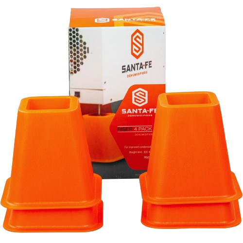 The Dehumidifier Risers are designed to elevate your Santa Fe for enhanced condensate line drainage. Santa Fe’s risers also provide a stable platform to install and level the dehumidifier for proper performance. Not only do they help with drainage, they help raise your Santa Fe, allowing for proper installation of a condensate drain trap or pump.